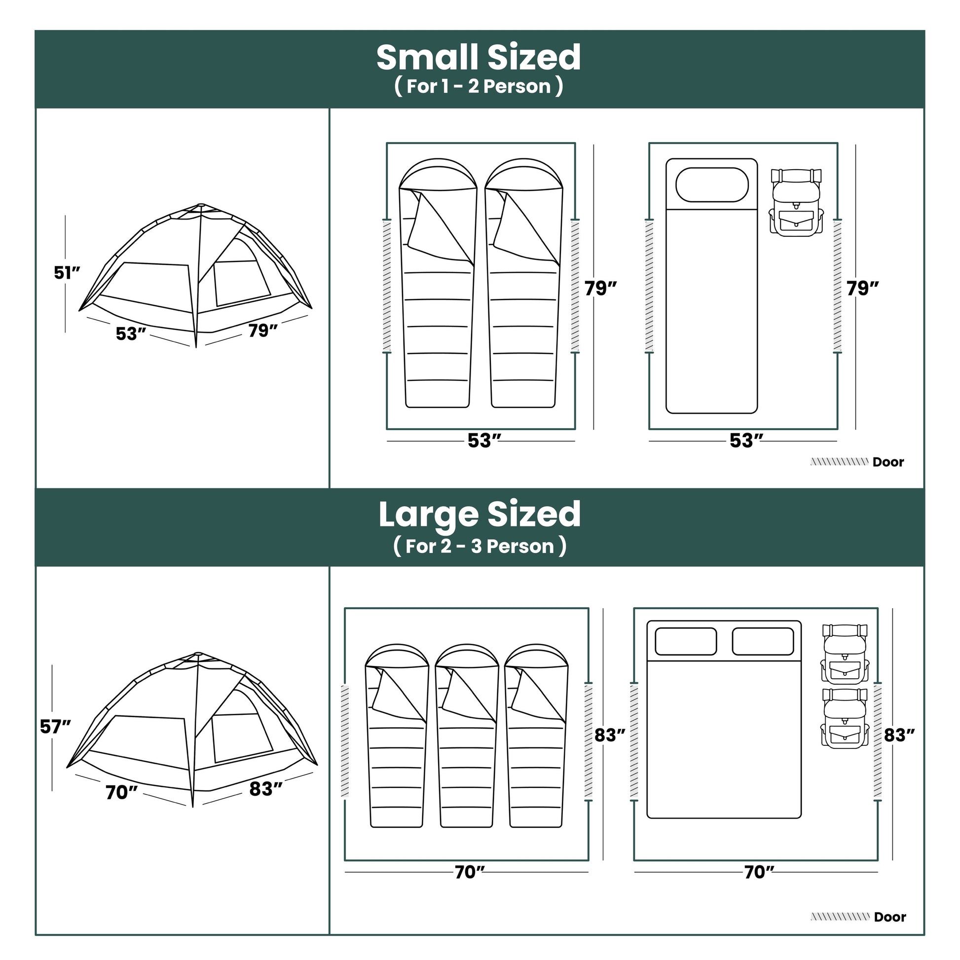 Small Tent: 7lbs (3.3kg) // Large Tent: 8lbs (3.7kg)